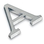 Vakiona kirjainten viimeistely hiotulla etupinnalla ja raepuhalletuilla sivuilla.